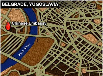 In further explanation of this obviously fraudulent story the reader is offered the following: “Only after the disaster did the C.I.A. turn up in its files two maps that accurately placed the embassy…A final backup also failed when several computerized databases of sites that were off-limits to bombing, including embassies, hospitals and churches, did not have the current location of the Chinese Embassy.” [6] And if you believe any of that come see me. I’ve got a bridge to sell.